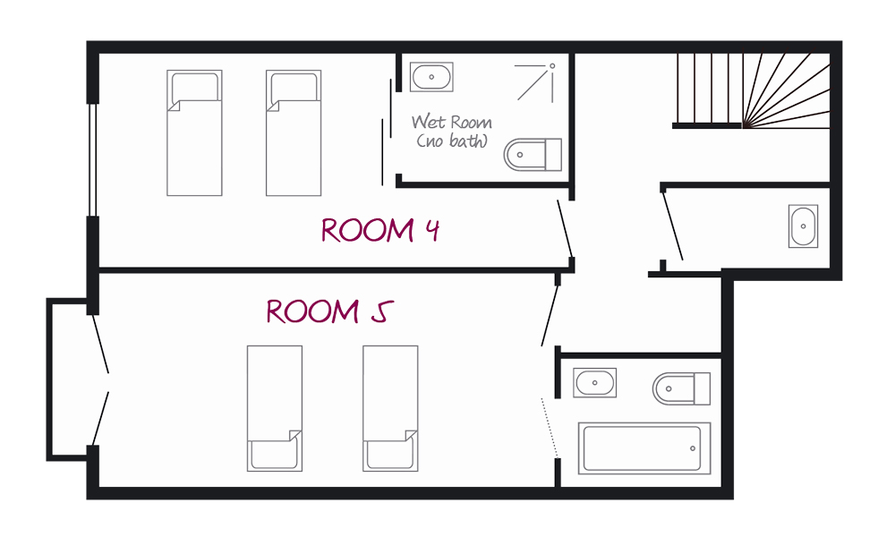 Sleeps 2 plus space for a cot. Twin room with ensuite shower/wet room and WC.