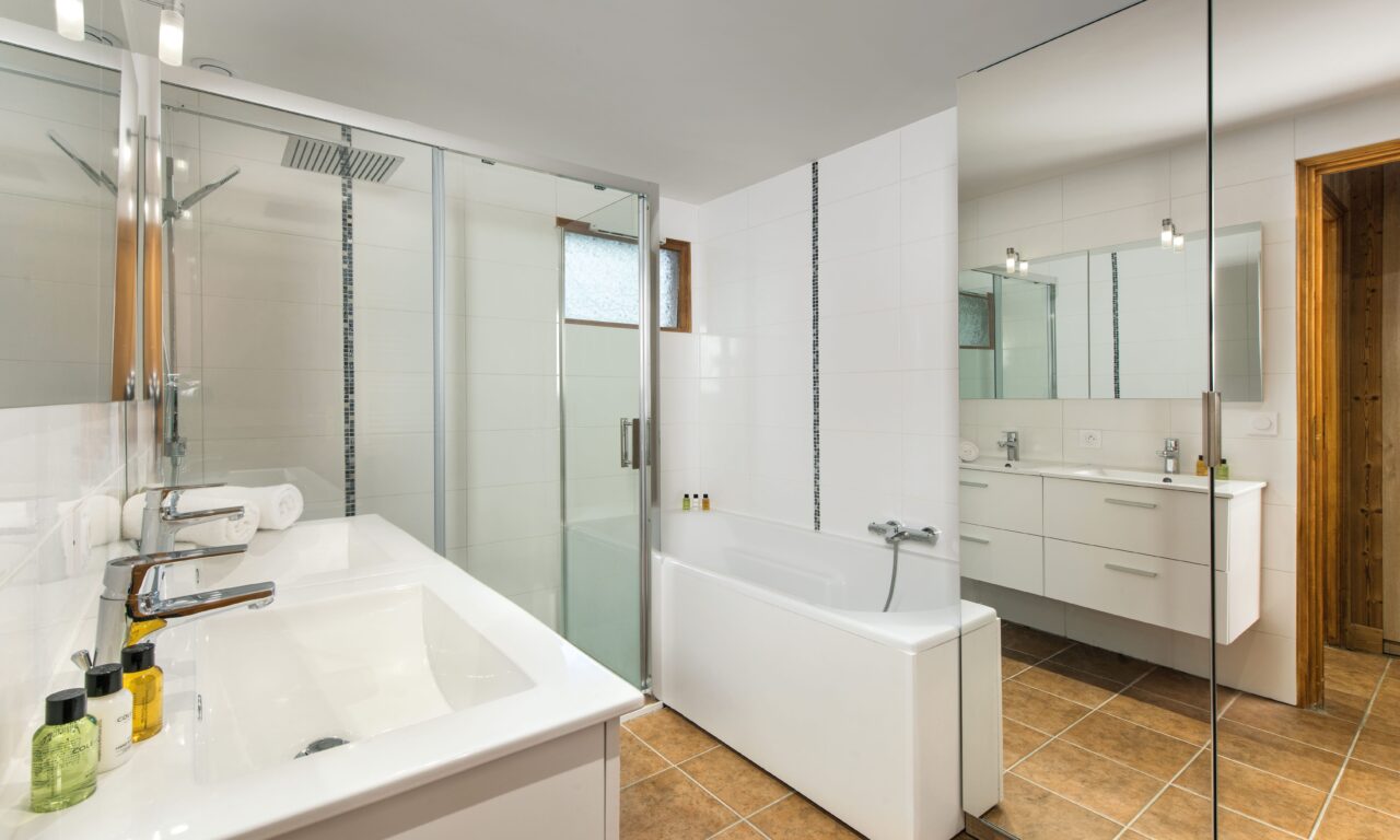 All rooms have en-suite bathrooms and there is a spacious living room and dining room, a playroom with a new comfy TV area for evening use (shared by the two chalets) and an outdoor hot tub.